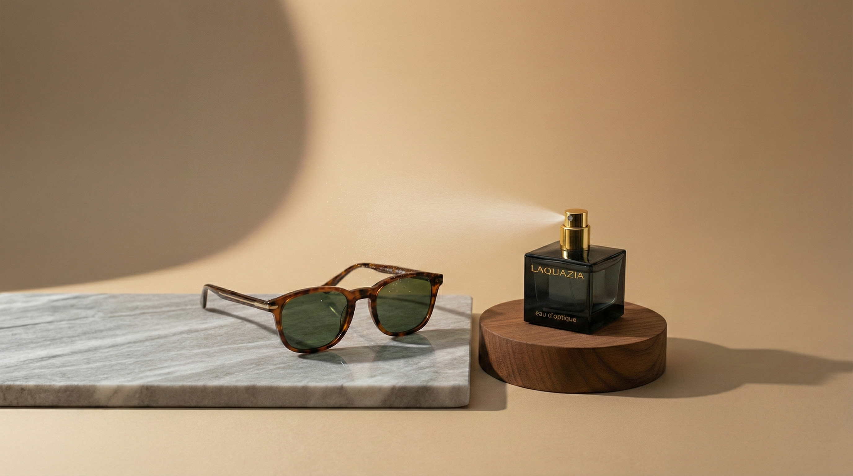 LAQUAZIA Eau d’Optique® revolutionizes eyewear care by seamlessly blending the art of perfumery with optical cleaning. Designed to remove dirt and smudges, protects your lenses and infuses them with a sophisticated fragrance.